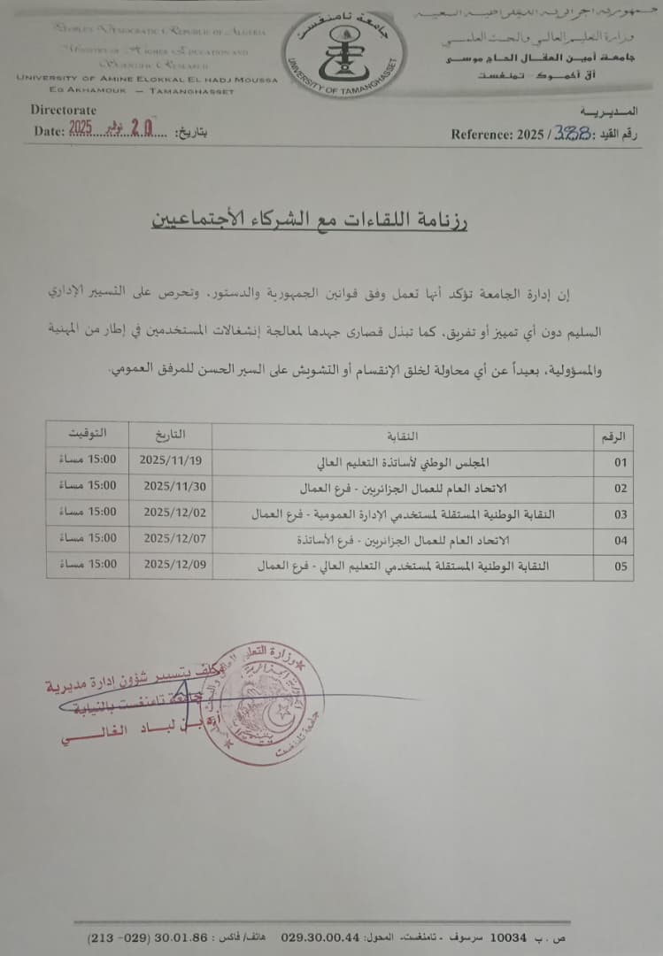 رزنامة اللقاءات مع الشركاء الاجتماعيين