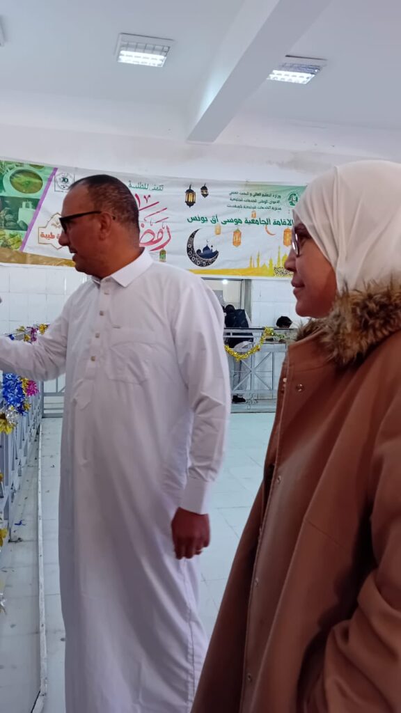 في إطار الزيارات التفقدية الدورية لمرافق الإقامات الجامعية، وعملا بأحكام القرار الوزاري المشترك المؤرخ في 9 ذي القعدة 1446هـ الموافق لـ 07 ماي 2025م المحدد لشروط النظافة والنظافة الصحية في منشآت الإطعام، نظمت إدارة جامعة تامنغست يوم الجمعة 27 02 2026، الموافق لـ 08 رمضان 1447 هـ، زيارة ميدانية إلى المطعم المركزي.