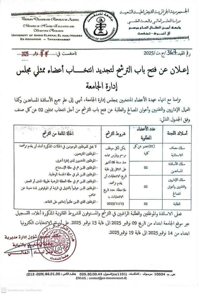 1- استمارة الترشح - سلك مصف الأستاذية -*- لإنتخاب أستاذ عن كل كلية -*- كلية العلوم و التكنولوجيا كلية الاداب و اللغات كلية العلوم الانسانية و الاجتماعية كلية الحقوق و العلوم السياسية كلية العلوم الاقتصادية التسيير و العلوم التجارية 2- استمارة الترشح - سلك الاساتذة المساعدين -*- لإنتخاب أستاذين عن الجامعة -*- سلك الاساتذة المساعدين 3- استمارة الترشح -سلك الاداريين التقنين و اعوان المصالح -*- لإنتخاب عضويين -*- سلك الاداريين التقنين و اعوان المصالح 4- استمارة الترشح -سلك الطلبة-*- لإنتخاب عضويين -*- سلك الطلبة